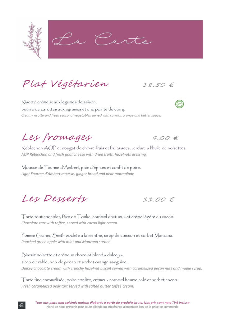 Tous nos plats sont cuisinés maison à base de produits exclusivement frais.